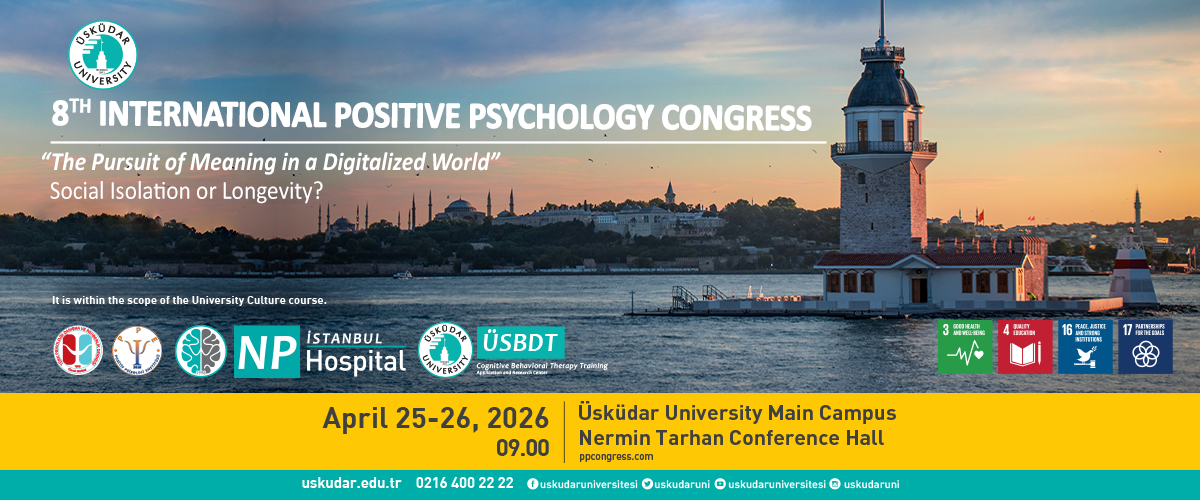 Drawing strength from the great interest and high level of participation shown in our congresses, we will hold the 8th International Positive Psychology Congress on 25 and 26 April 2026 in a phygital format at Üsküdar University in Istanbul. The main theme of this year’s congress has been determined as “The Search for Meaning in a Digitalized World: Social Isolation or Longevity?”